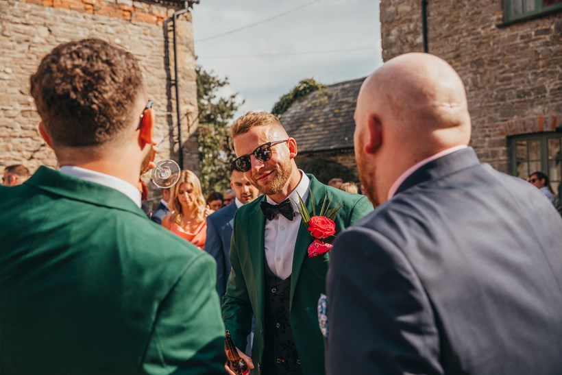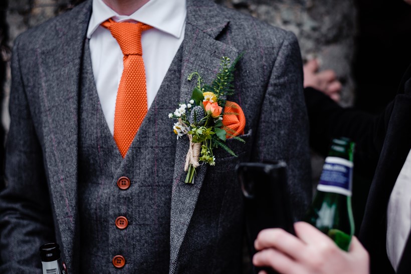 We’re seeing more and more grooms opt for colour when it comes to their suits. But even if they want to play it safe with grey or navy, a boutonniere, a bright pocket square or snazzy tie are all ways to introduce a pop of colour into the proceedings.
