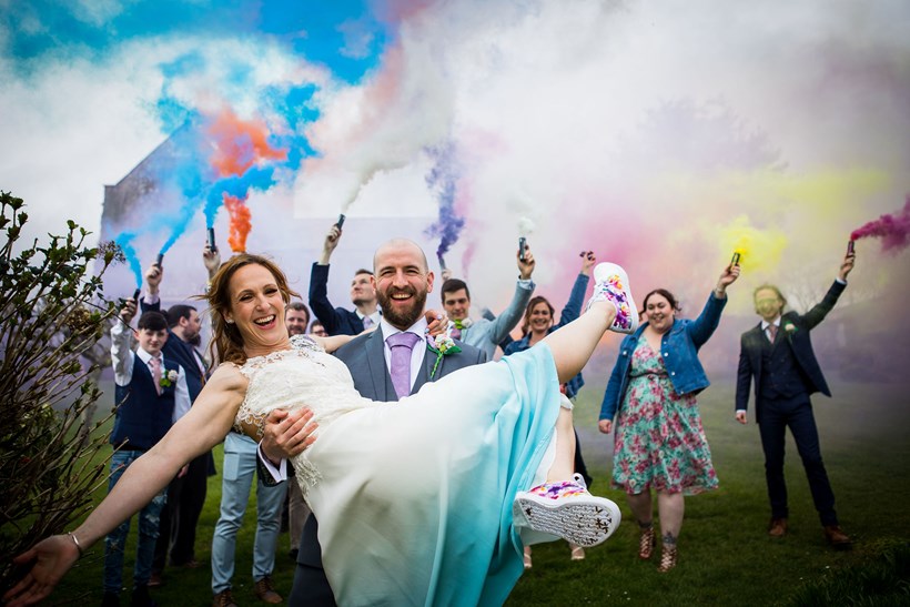 Smoke flares are hugely popular at the moment and add a dash of and glamour to your photographs. Choose flares in one colour to complement the theme of your wedding. Or for maximum fun, go all out and have a full rainbow of hues.