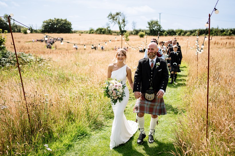 A huge congratulations to Sally and Martin, who enjoyed a gorgeous Scottish influenced wildflower meadow wedding at Ash Barton last summer.