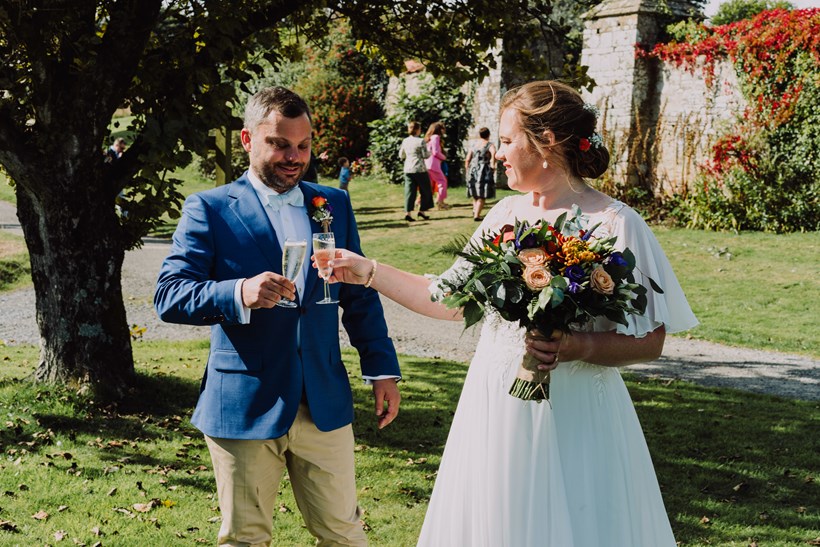 Zoe and Tim were married in our wildflower meadow last September followed by finger food in the walled garden and a wedding breakfast and dancing in the big party barn. We loved how a guest at each table took on the carving duties! And pretty much all the guests stayed over. 15 tents were erected in the glamping area, plus a chill out tent for those that had partied too much! Many congratulations to you both.